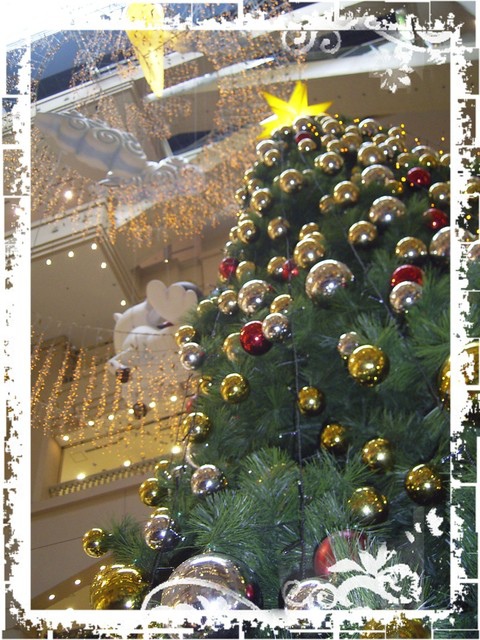 週六去桃園台茂感受耶誕,中庭佈置了雪屋及大型耶樹,