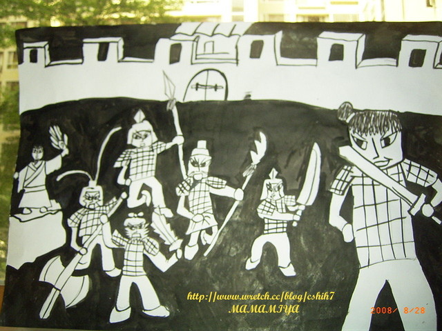 運用電腦結合日常玩具自編戰爭史,完成後已PO上它的部落格,小喵