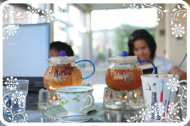 悠哉的看著小說,啜飲著酸酸甜甜的桔茶,還和小喵演了一段"貴婦"喝